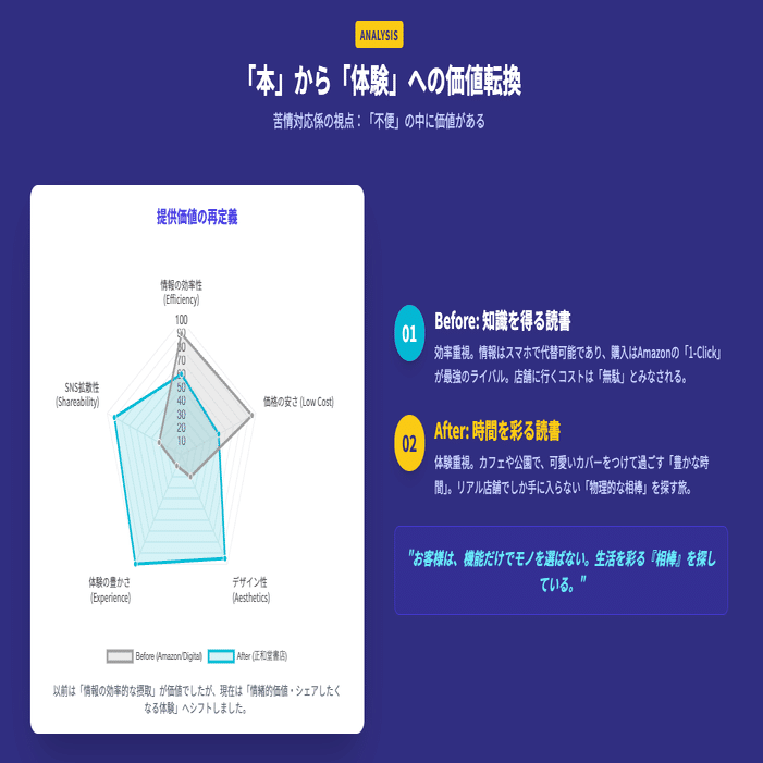 正和堂書店の勝因は、本を「情報の塊」から「素敵な時間を過ごすための小道具」へと再定義したことにあります。