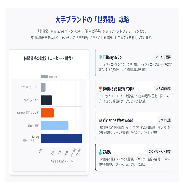 日経MJの記事によると、ヴィヴィアン・ウエストウッドやZARA、バーニーズといった海外有名ブランドが、日本で相次いでカフェをオープンさせています。