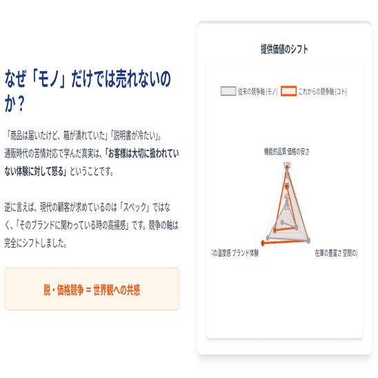 大手ブランドが「モノ売り」に見切りをつけて「場所(体験)」を作り始めた今、スペックだけの勝負は、もはや「価格競争」という泥沼への入り口でしかありません。