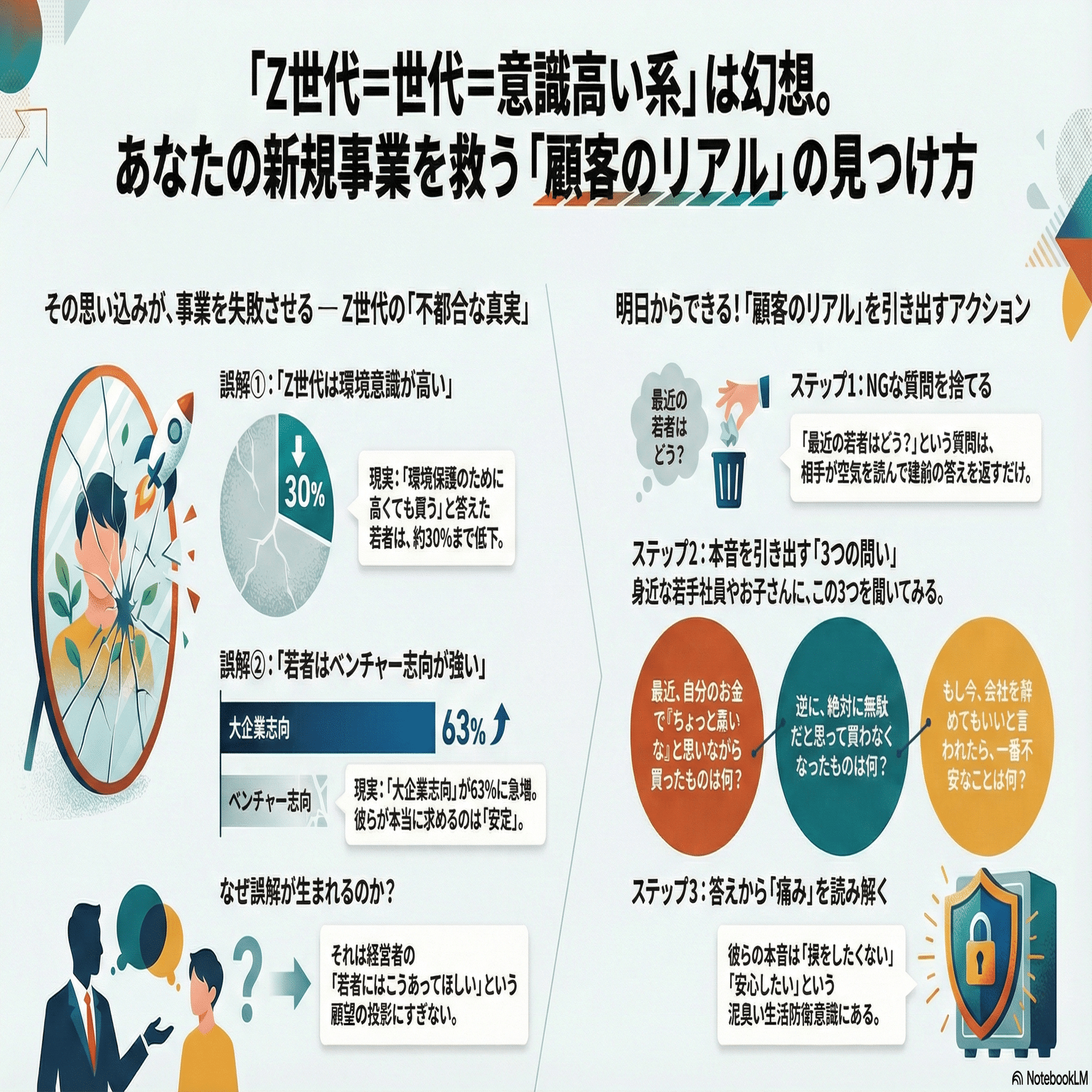 「Z世代」というラベルを剥がし、一人の「人間」として彼らを見てください。 そこには、私たちと同じように、将来に不安を感じ、賢く生きようともがく姿があるはずです。 「思い込み」を捨て、「生の声」を聞く。 それができる中小企業だけが、次の時代に選ばれます。
