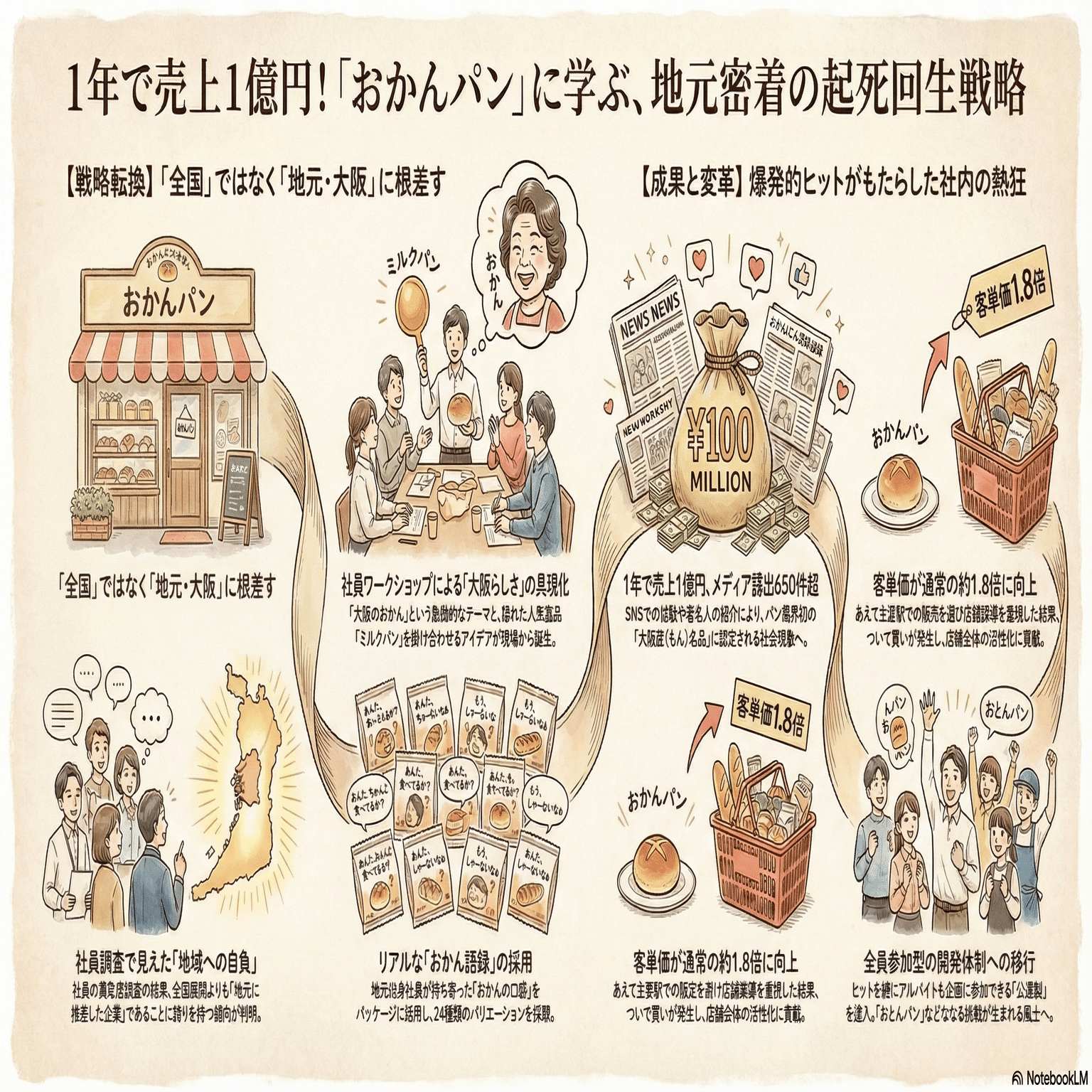 今回取り上げるのは、大阪のベーカリー「クックハウス」が販売し、1年で1億円超えを売り上げたという「おかんパン」の事例です。